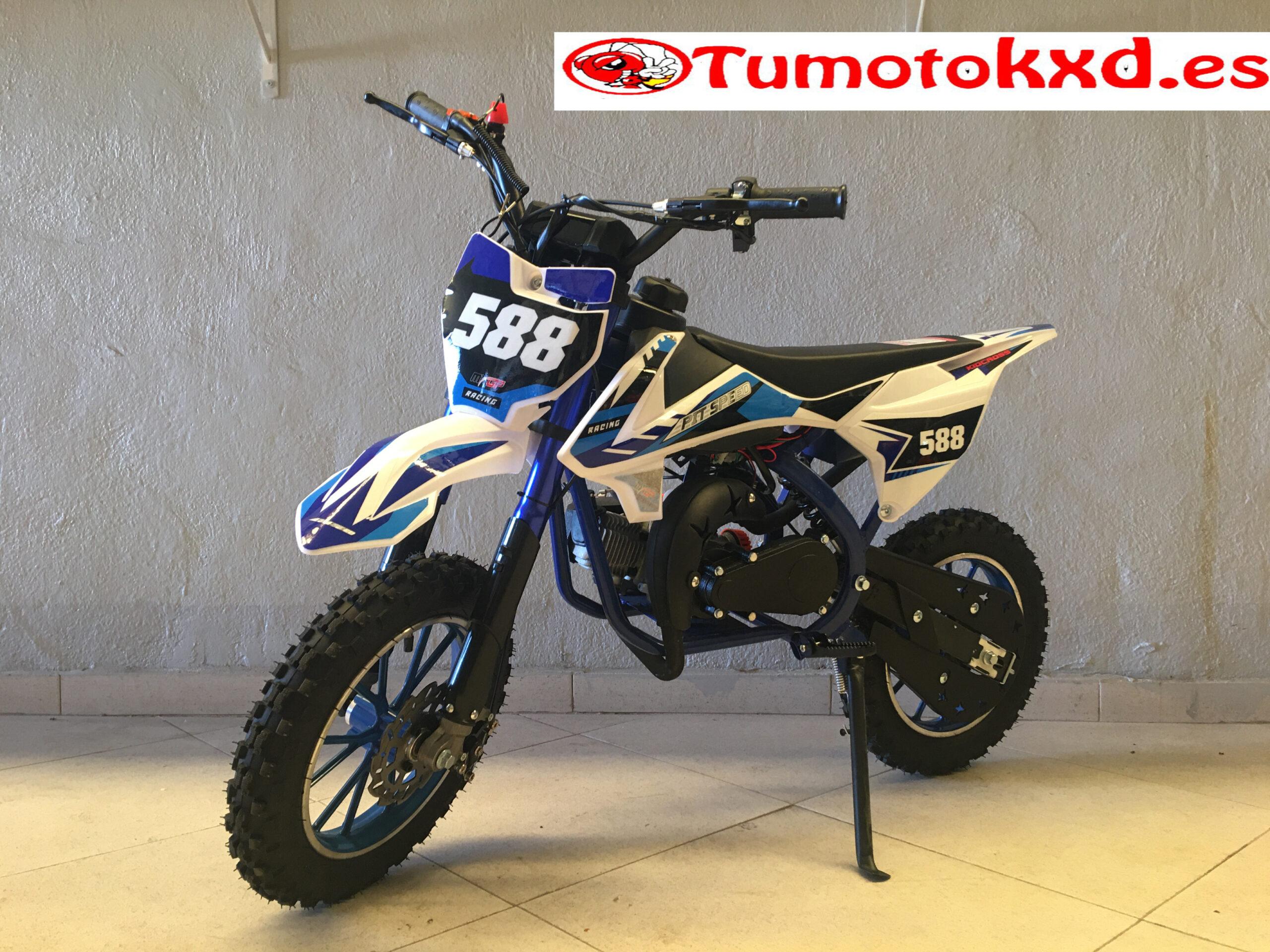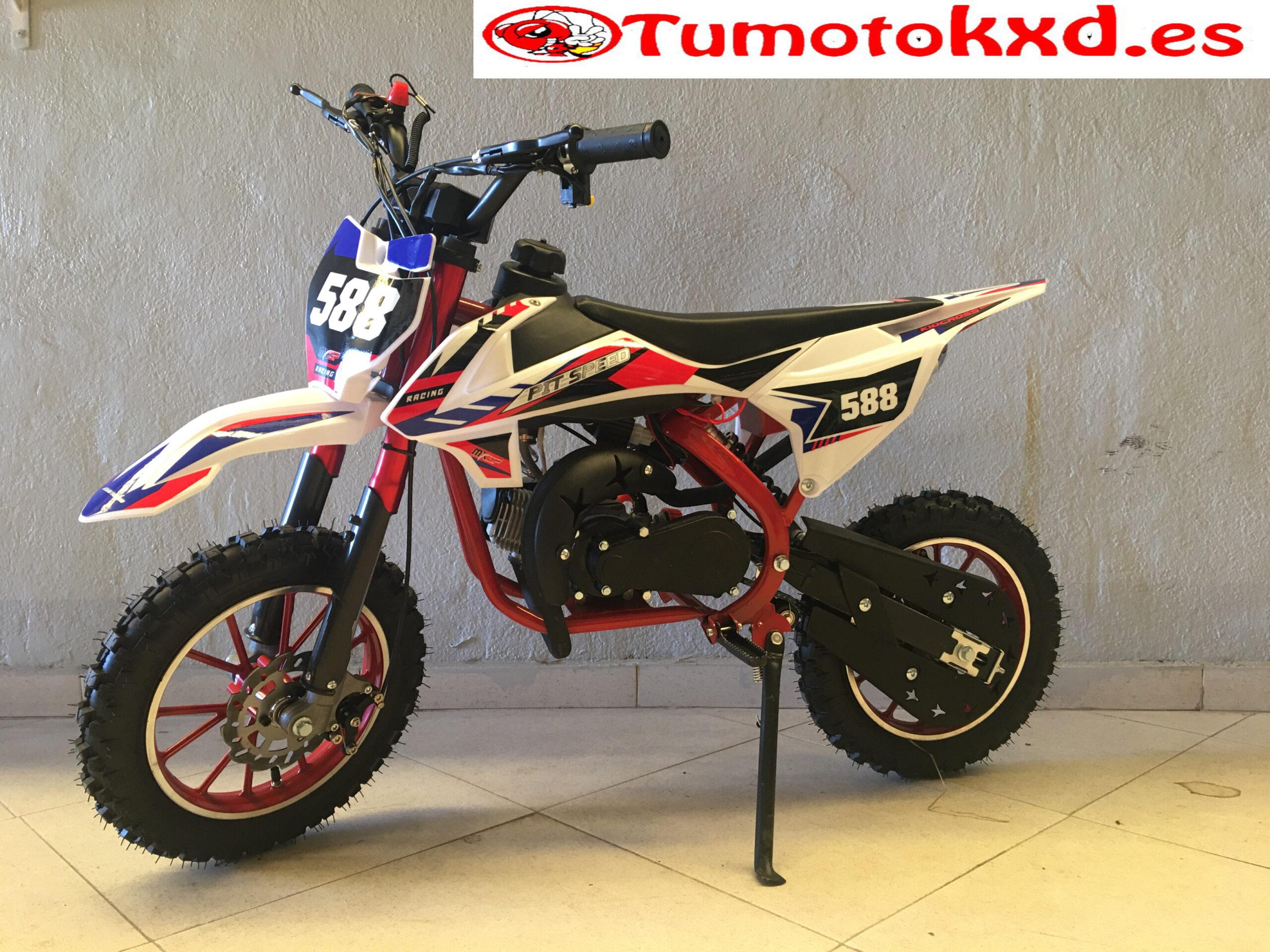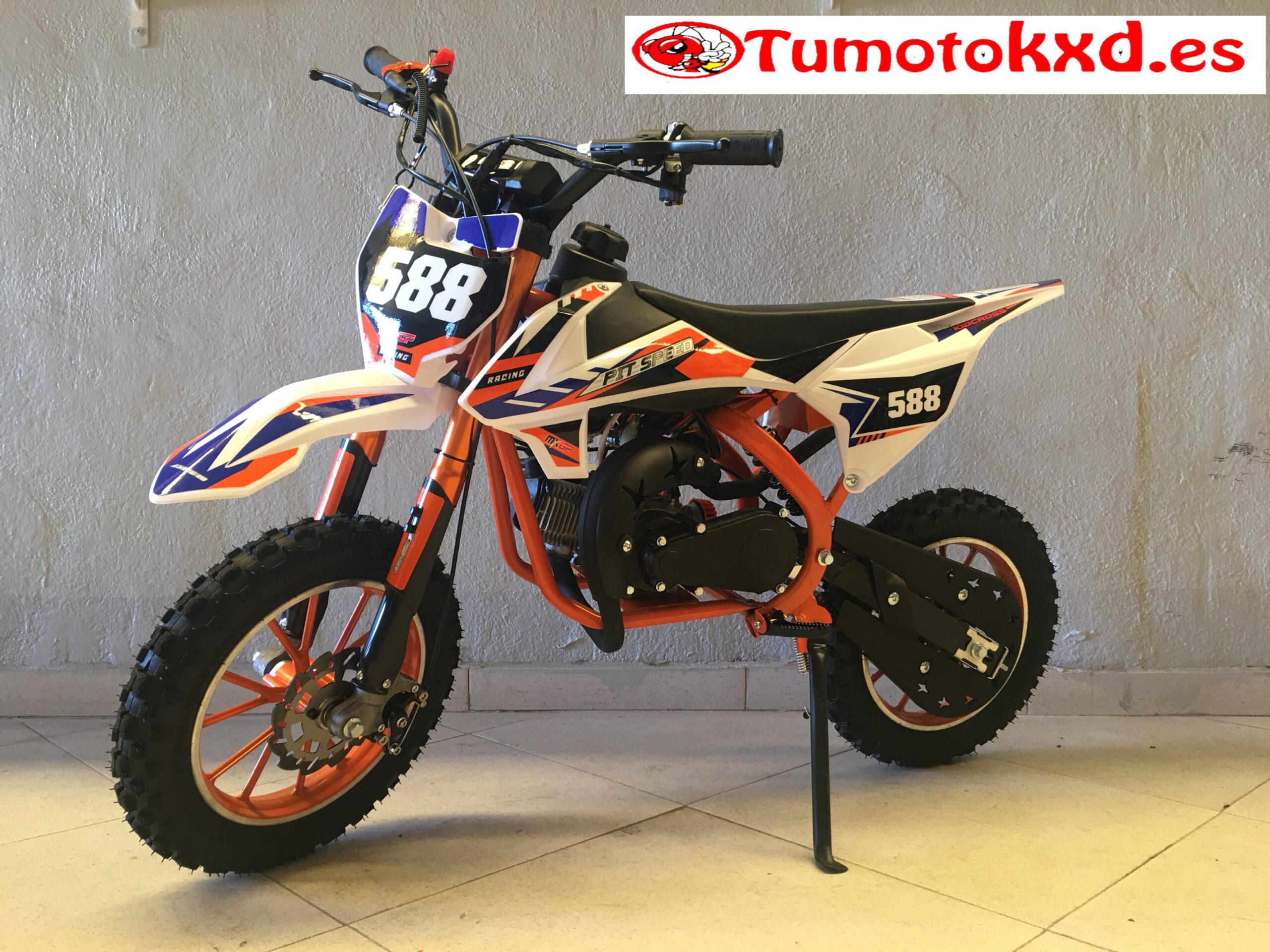 del suelo al manillar 790 mmEsta mini moto cross pit speed turbo viene equipada con un motor de 49cc de 2 tiempos refrigerado por aire, una moto tranquila , fácil de conducir, cómoda y con un peso de 22 kg con lo que los nuevos pilotos la dominarán en poco tiempo. El método de arranque es mediante tirador de nylon, recubierto con carcasa metálica; este mismo modelo se puede encontrar con la variación de arranque Eléctrico. Esta mini moto cross Kxd 18 turbo viene equipada con un motor de 49cc de 2 tiempos refrigerado por aire, una moto tranquila , fácil de conducir, cómoda y con un peso de 22 kg con lo que los nuevos pilotos la dominarán en poco tiempo.