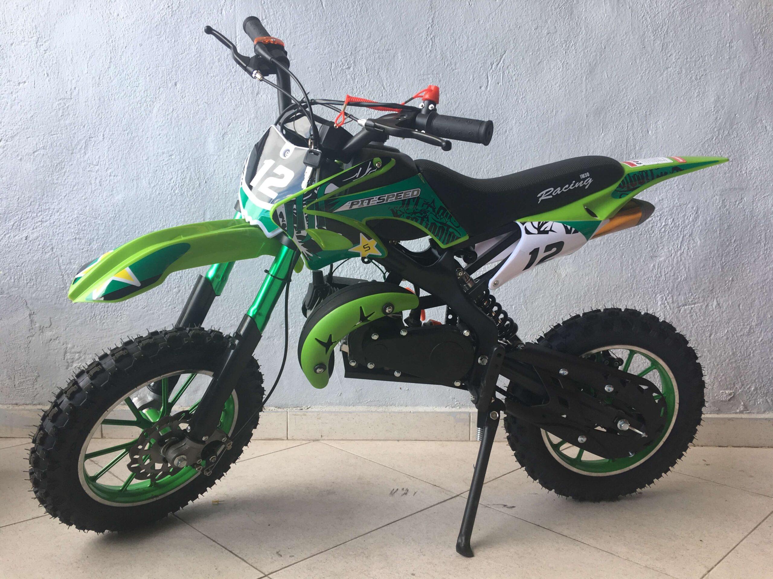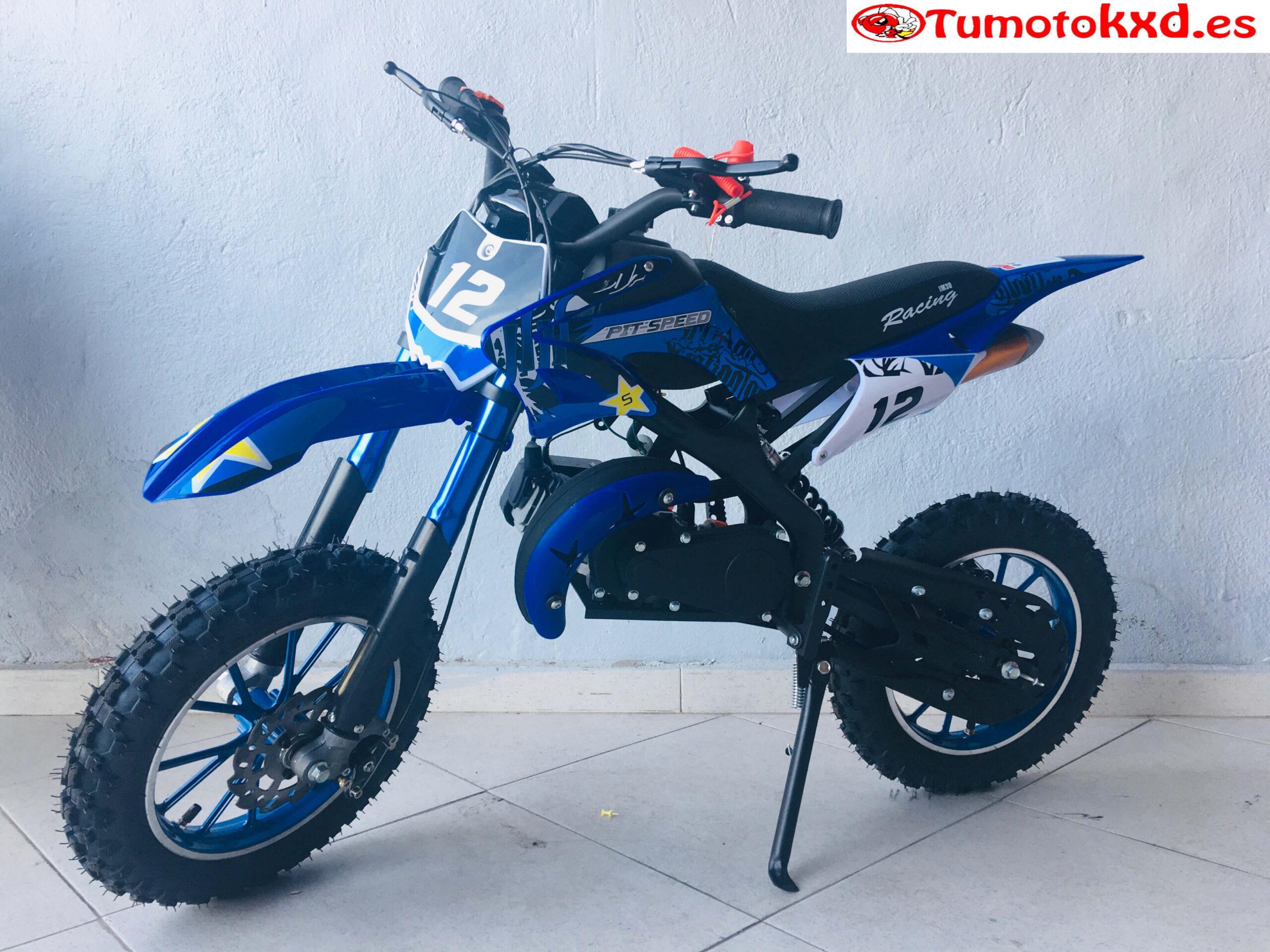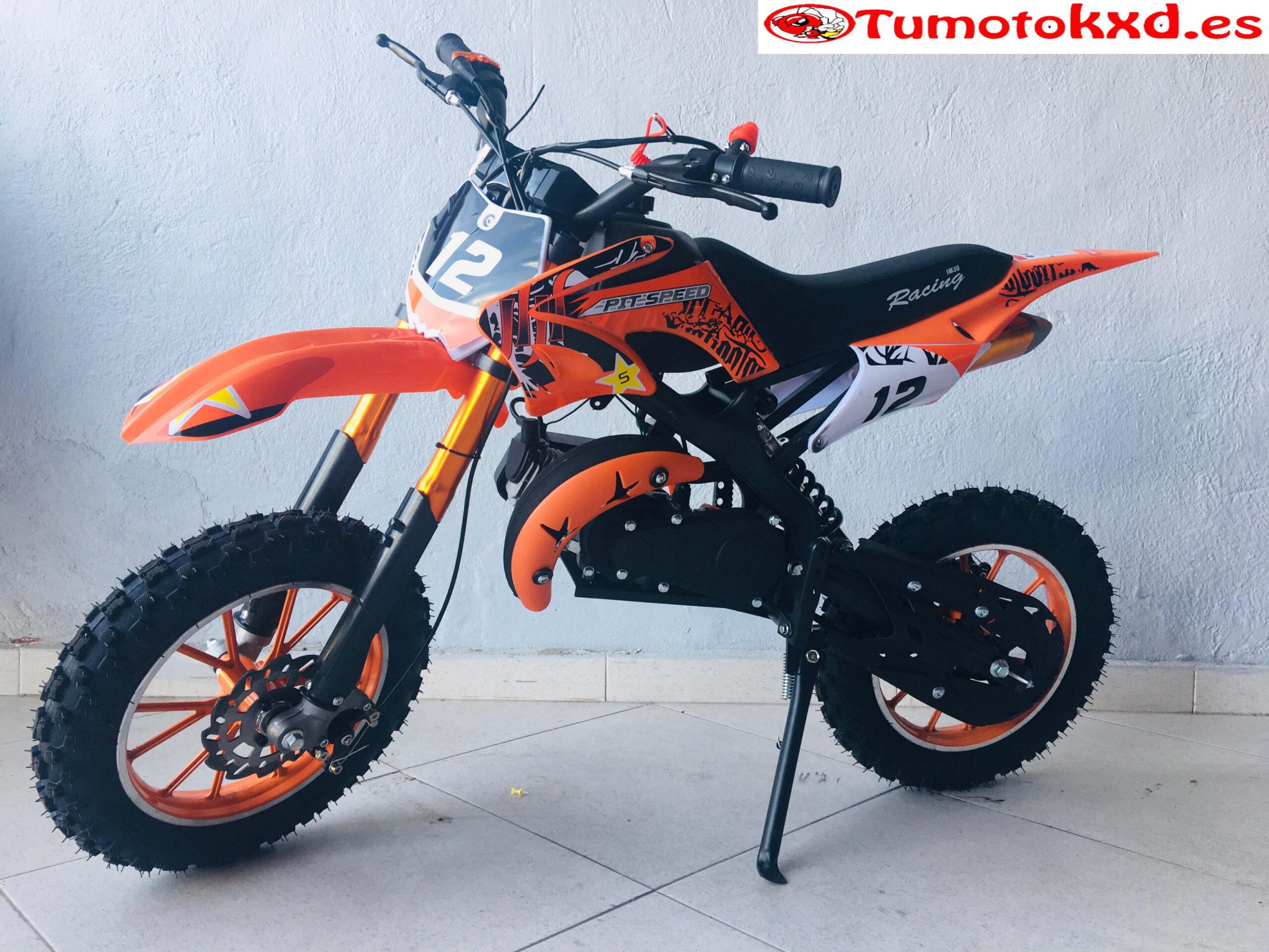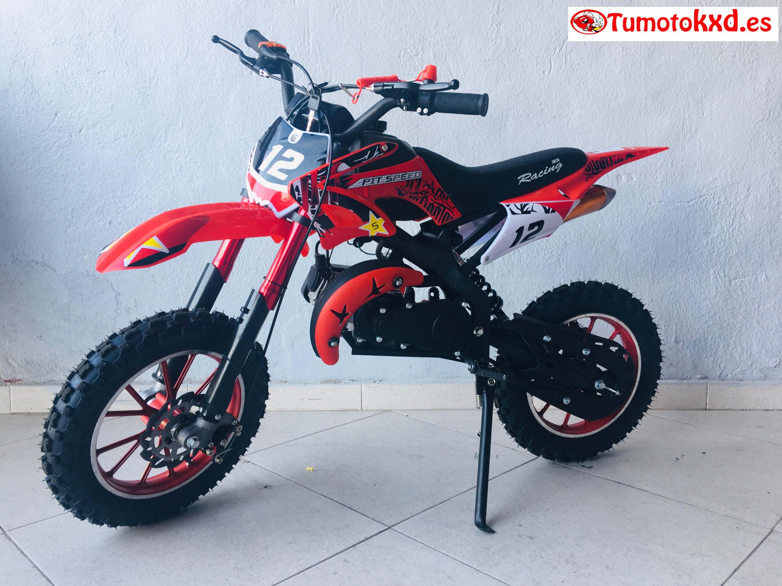 Esta mini moto cross de 49cc está equipada con un motor de 49cc de 2 tiempos refrigerado por aire. Es una mini moto cross sin mucho nervio para hacer más fácil su conducción para los peques. Tiene un peso de 22kg con lo que los nuevos pilotos la dominaran en poco tiempo.