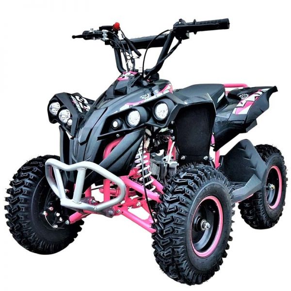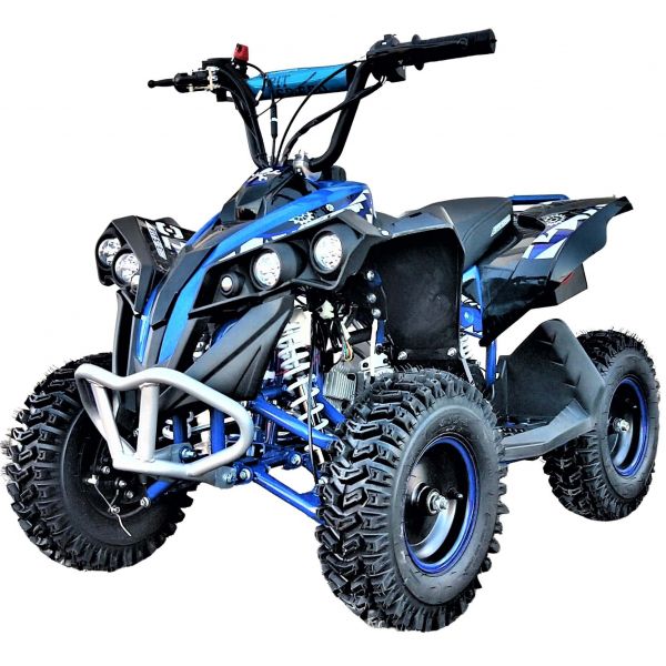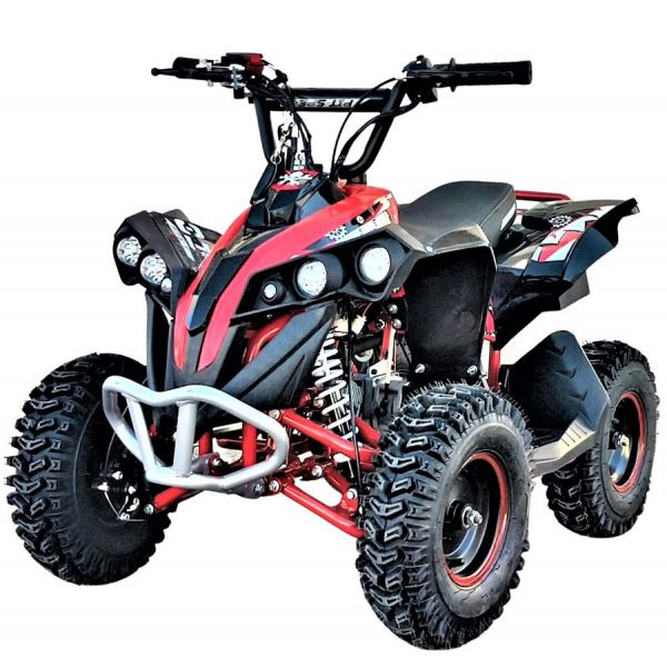 Nuevo modelo de Mini quad infantil con un motor de 49cc de 2 tiempos y 3,5 cv de potencia puede alcanzar una velocidad máxima de 35 km/h ( dependiendo del peso del piloto ) le hemos añadido a su amplia lista de prestaciones entre ellas arranque eléctrico para una mayor facilidad de puesta en marcha para los más peques de la casa.
