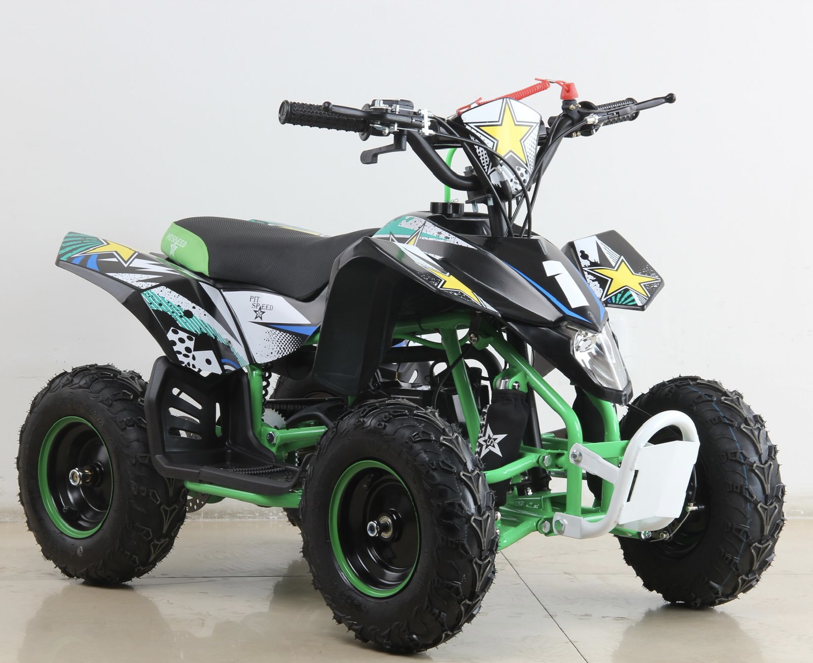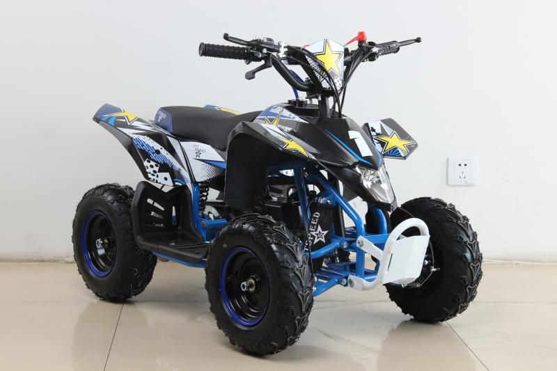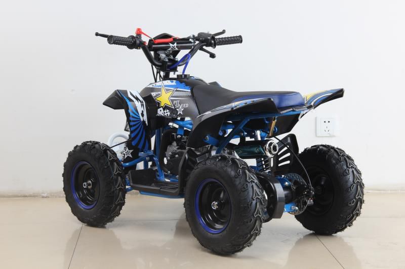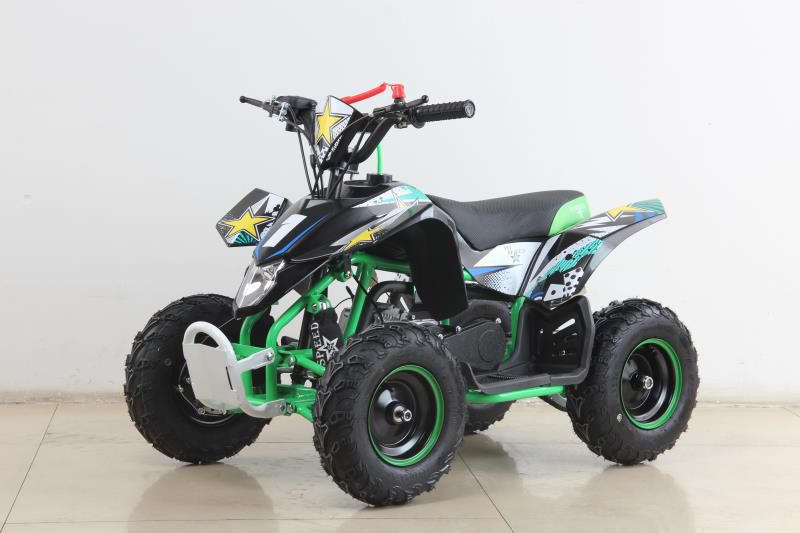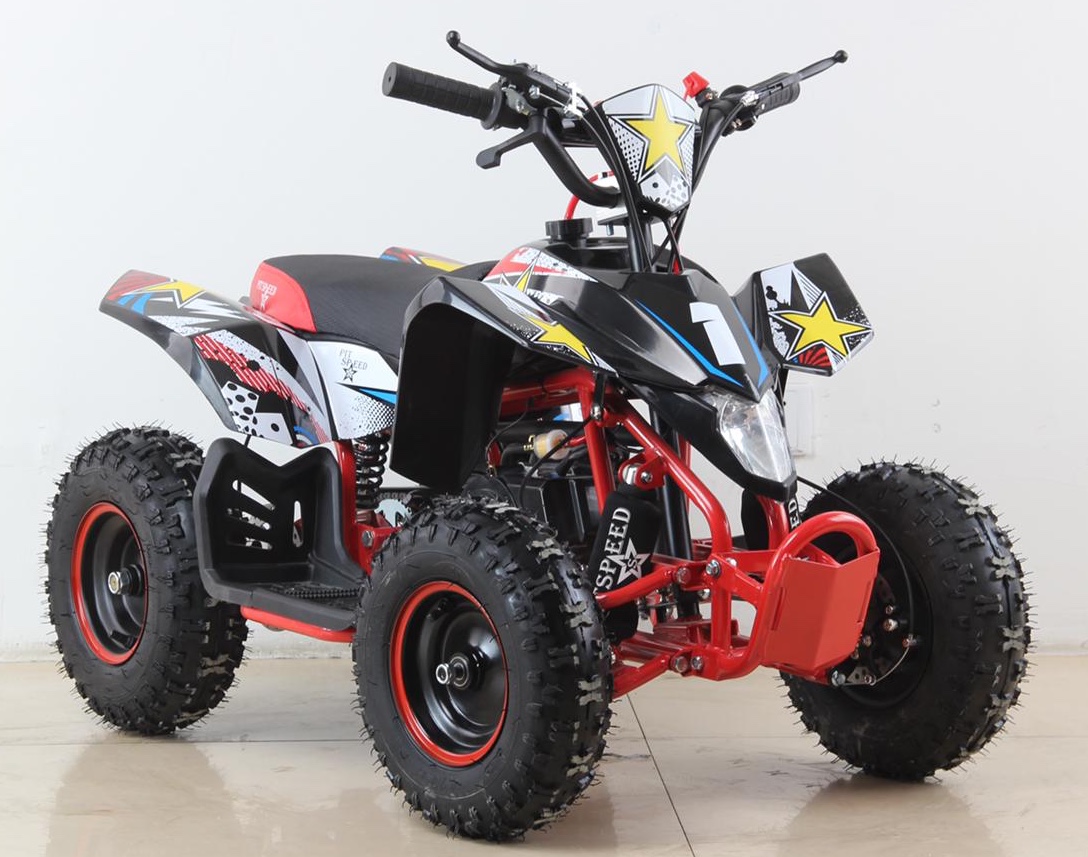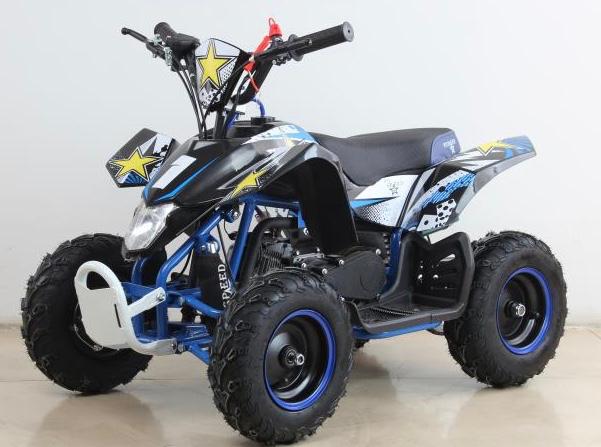 Diseñado para que destaque de la competencia, su calidad insta en los detalles, desde el robusto marco de acero con fuertes soldaduras de costura hasta su robusto manillar con doble sujeción. La seguridad también es una característica importante del quad, los reposapiés grandes y el asiento cómodo que asegura que los niños se sientan seguros, con su sistema de hombre al agua, regulador de velocidad. Protectores de escape, cárter y cadena para evitar lesiones al conductor.