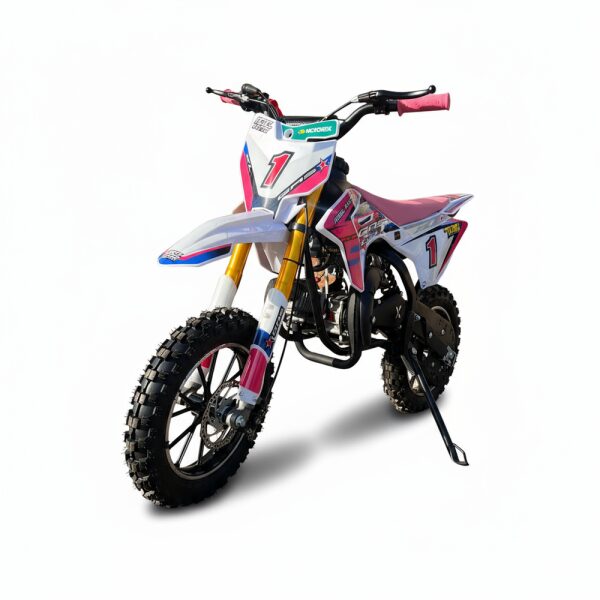 Aunque se vende como moto de competición —ya que no puede circular por vía pública—, su función real es la de moto de iniciación, perfecta para que los niños aprendan a dominar el equilibrio, la aceleración y el frenado de una forma segura y progresiva.
