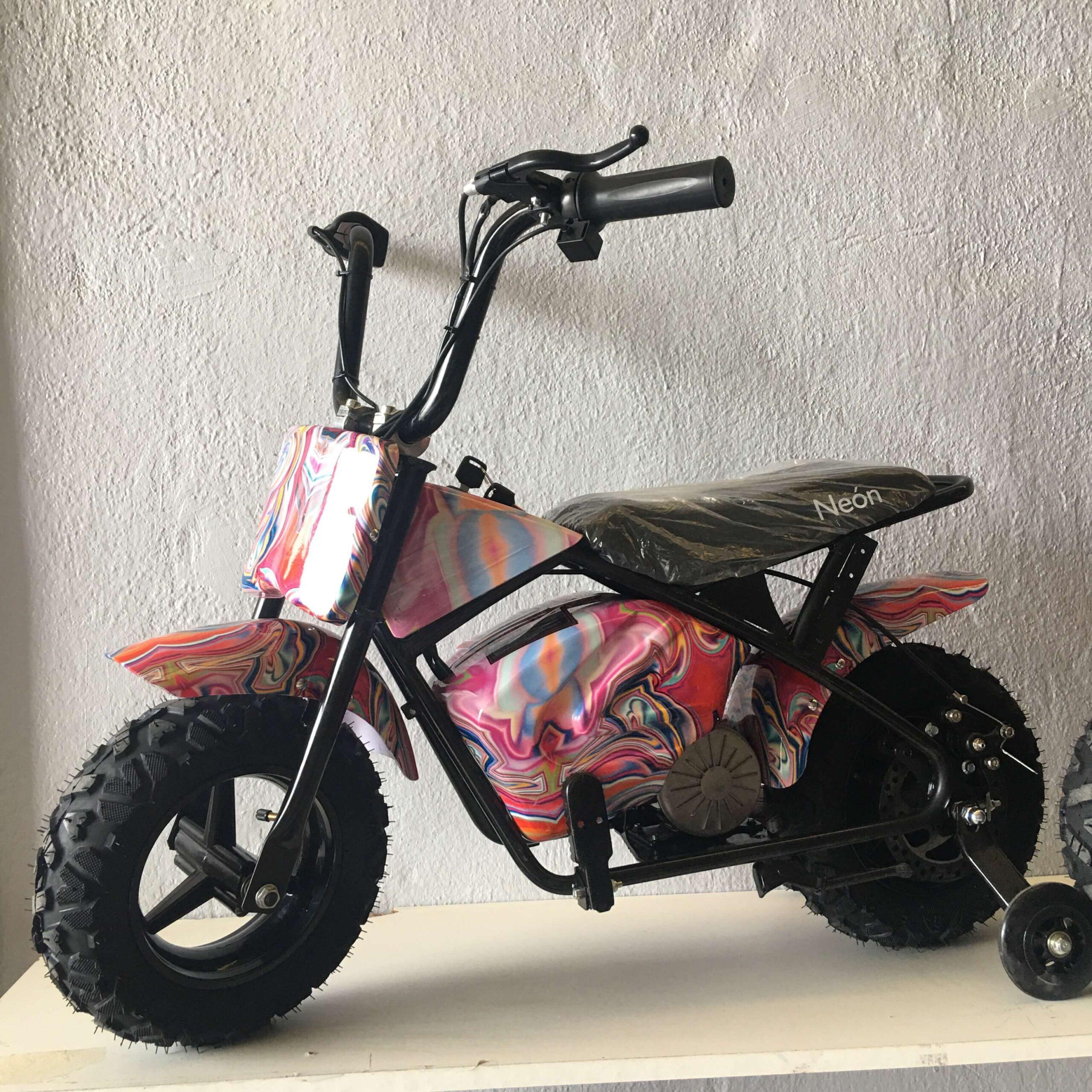 Es una mini moto para los más peques de la casa, pero viene equipada con todos los extras al igual que modelos superiores para adolescentes y adultos.