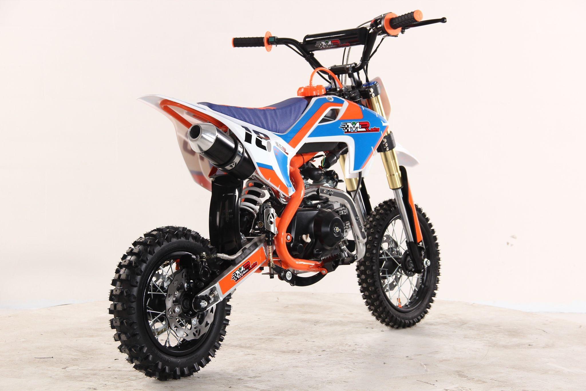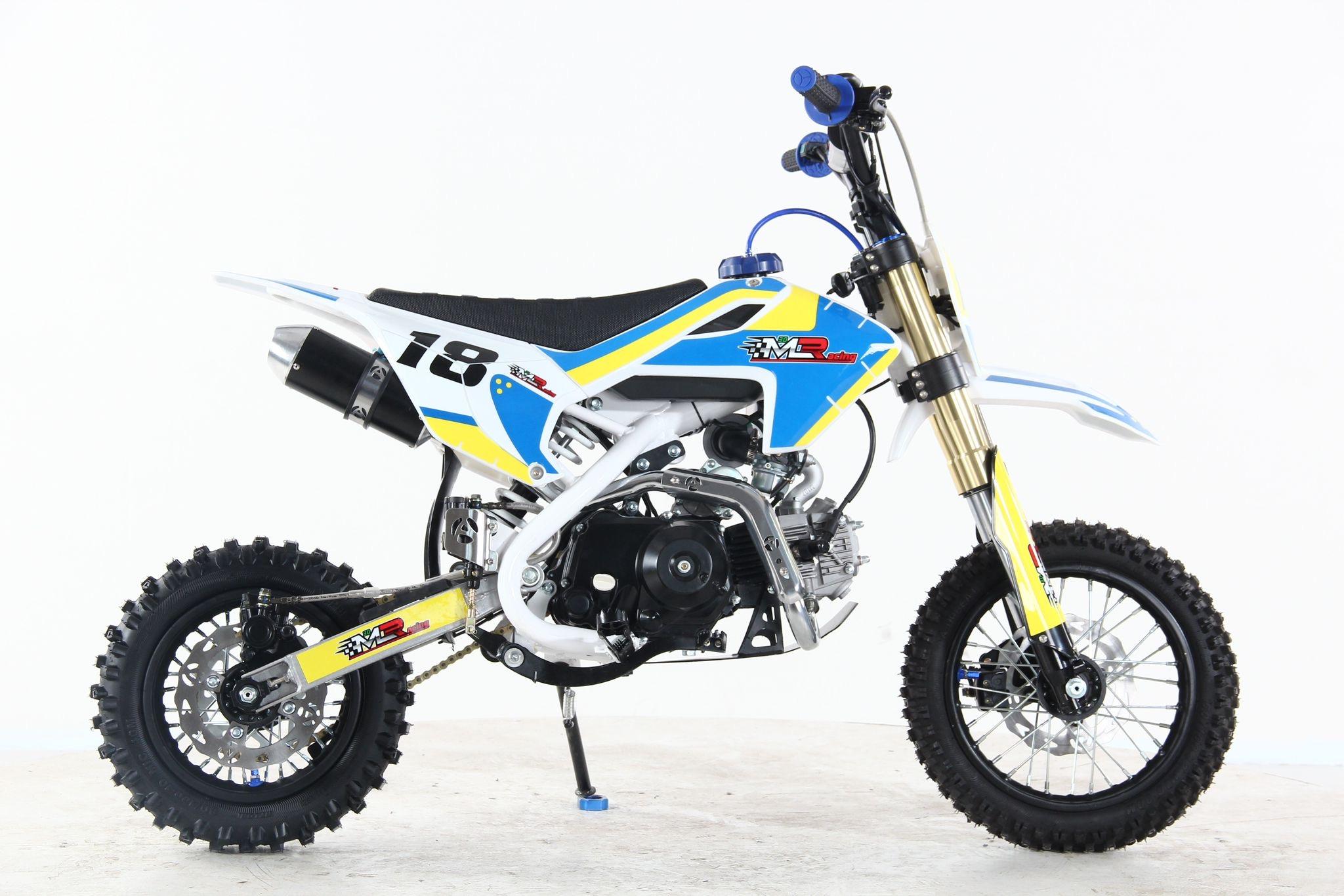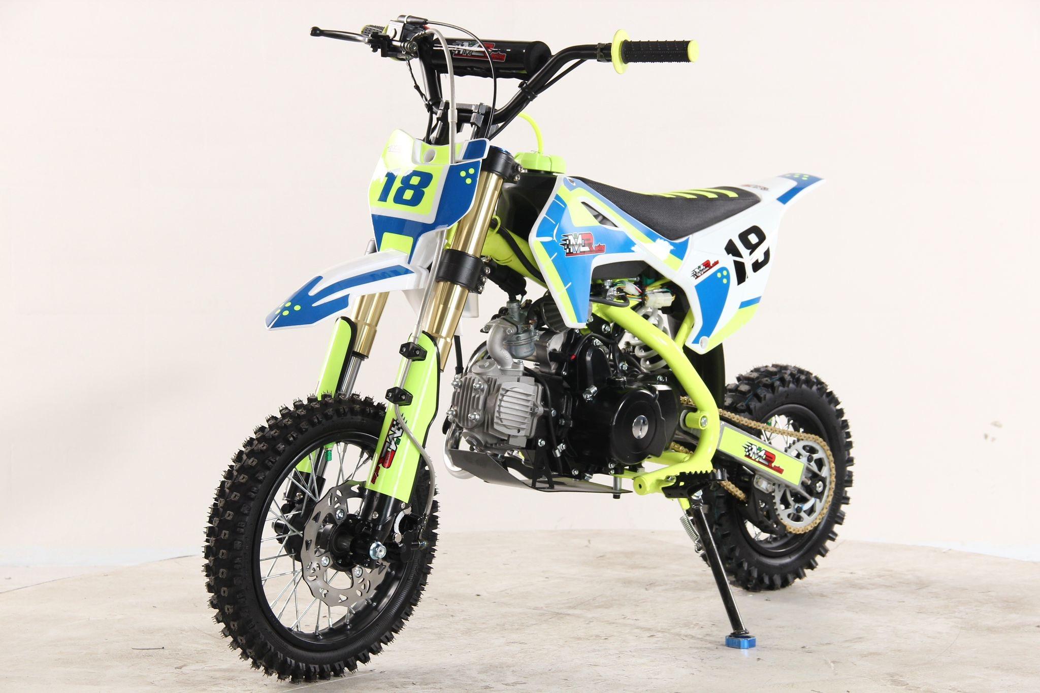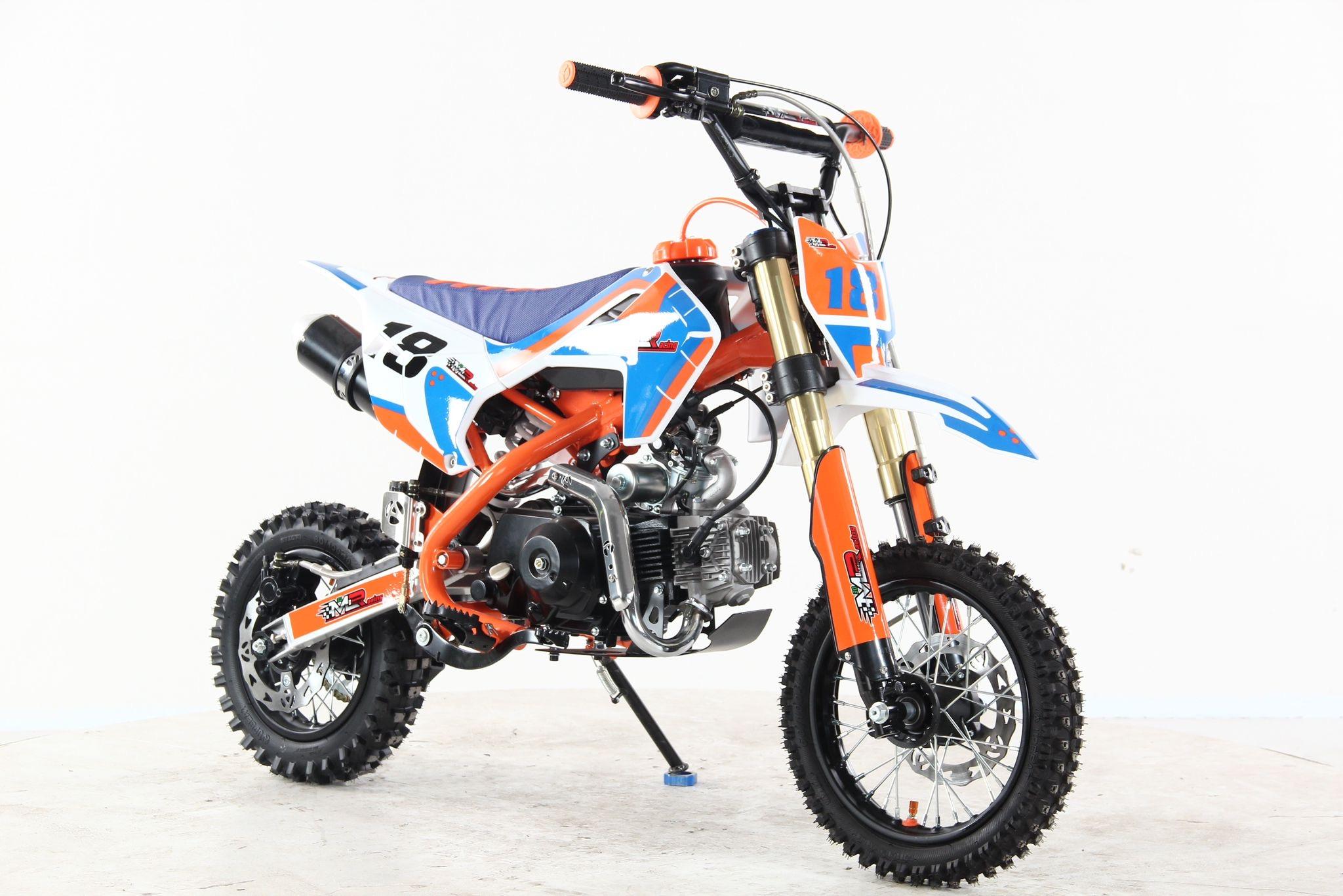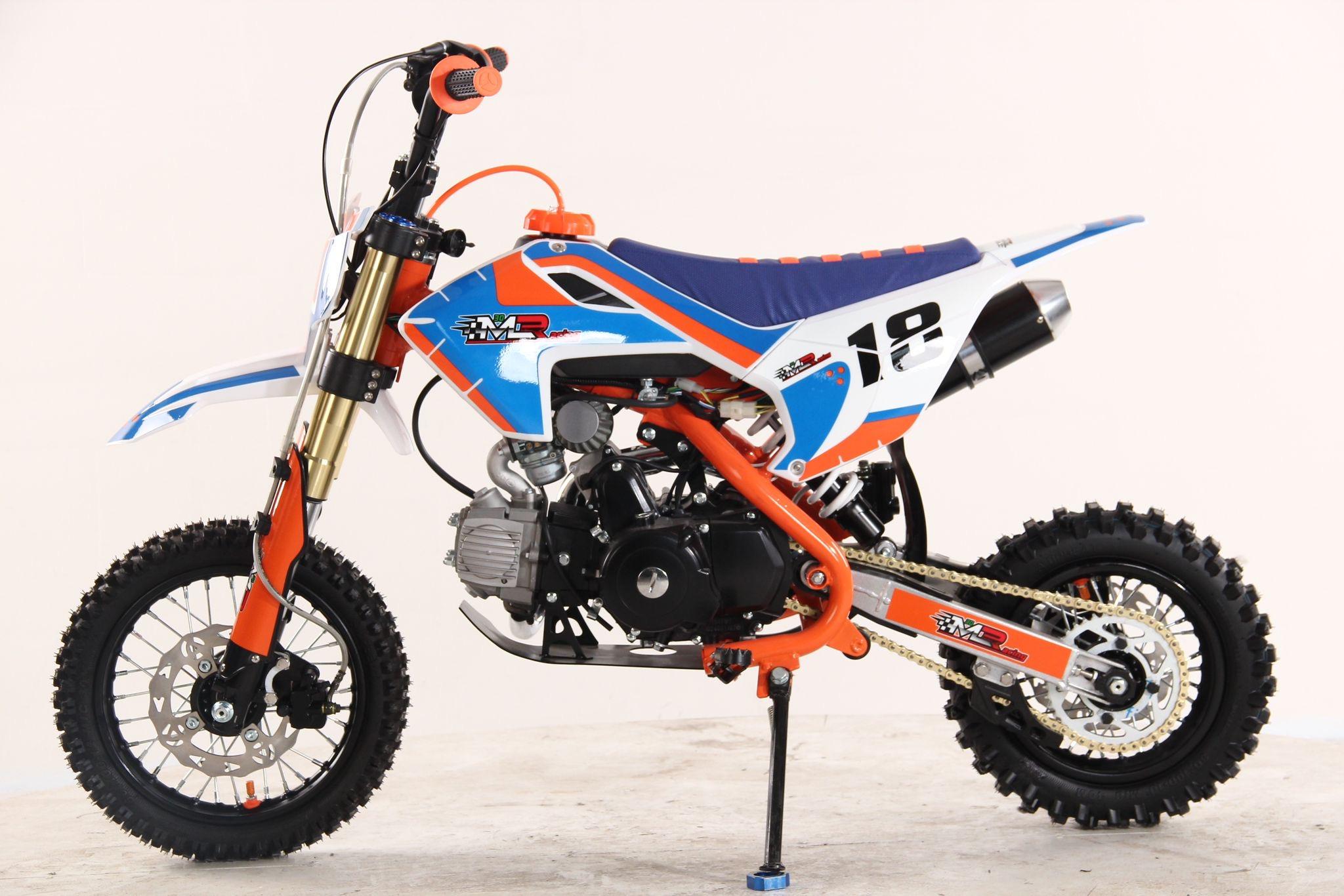Nuevo modelo de pit bike infantil  monta un  motor 125cc de 4 tiempos automatica sin embrague refrigerado por aire con una potencia de 12cv a 7500 rpm esto hace que se facil para niños controlarla moto y moverse por cualquier terreno.